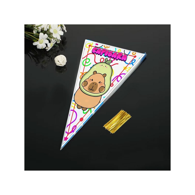 Paquete 10 bolsas capibara cono de dulces, ideal para repartir los bocaditos entre tus invitados.