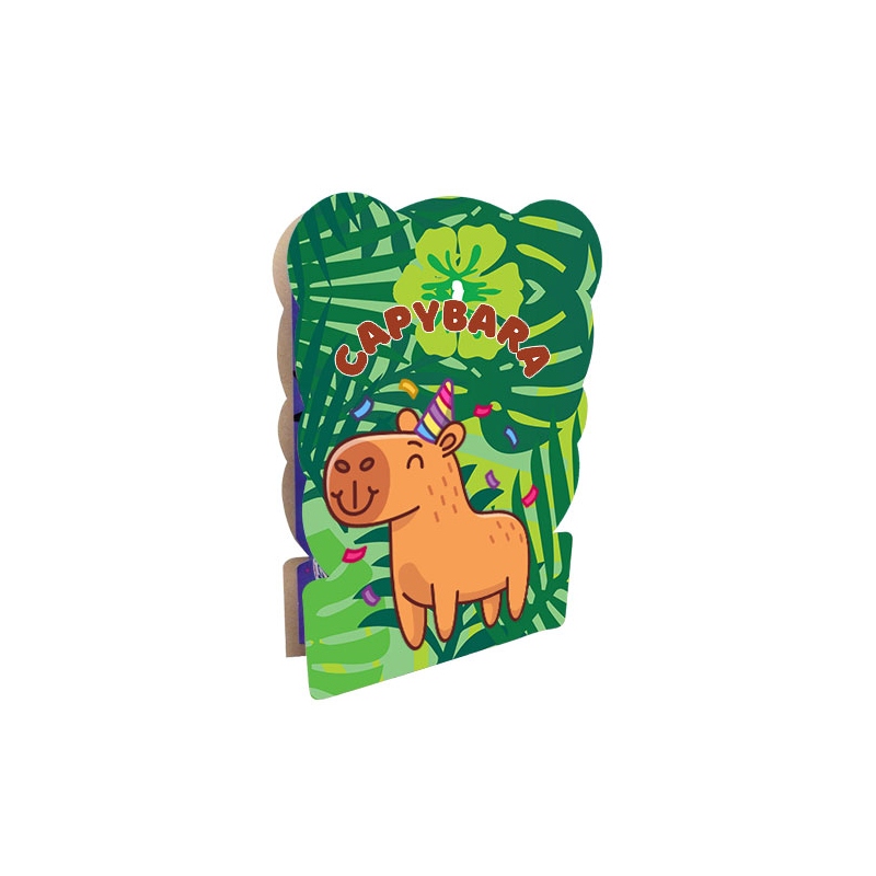 Pi帽ata armable de cart贸n decorada con im谩genes de capibara. Recomendada para el juego 鈥渞ompe la pi帽ata鈥 realizado durante toda fiesta de cumplea帽os. Rell茅nala con dulces y juguetes para que los m谩s peque帽os puedan romperla y obtener sus premios.