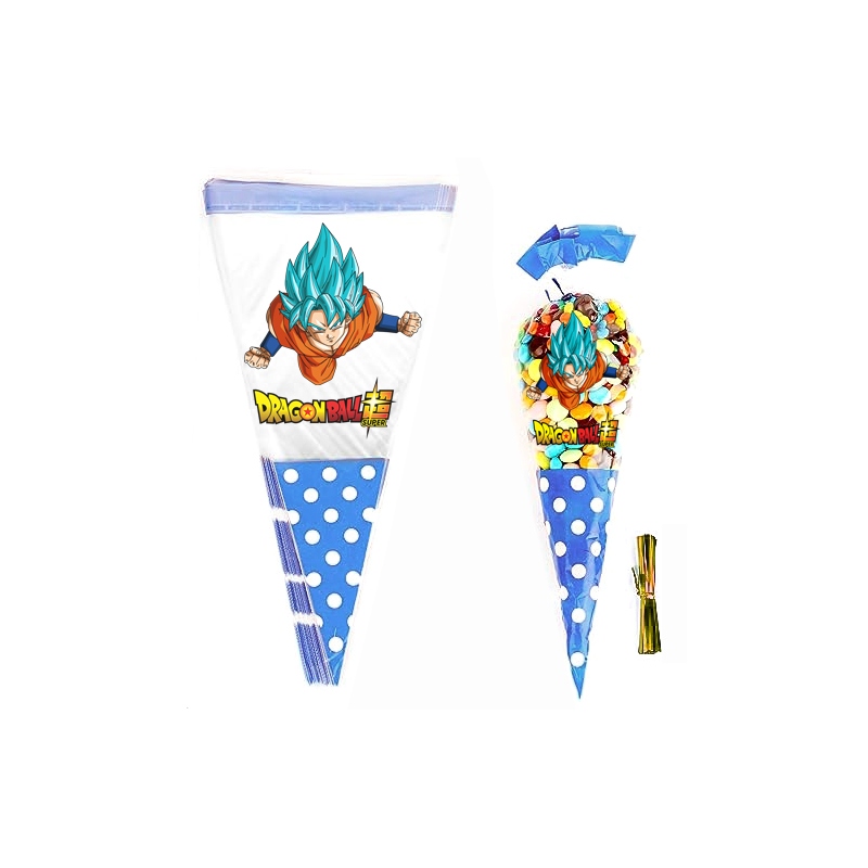 Paquete 10 bolsas dragon ball tipo cono para los dulces y bocaditos entre tus invitados.
