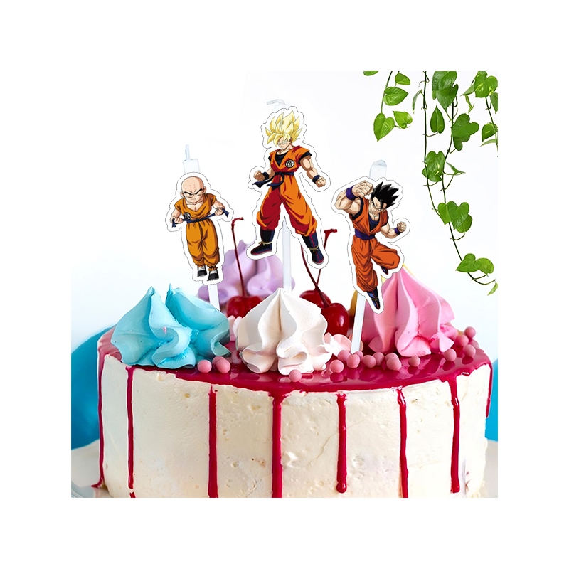 Paquete 3 topper vela dragon ball para adornar el pastel de cumplea帽os. Daras un ambiente especial a tu fiesta.