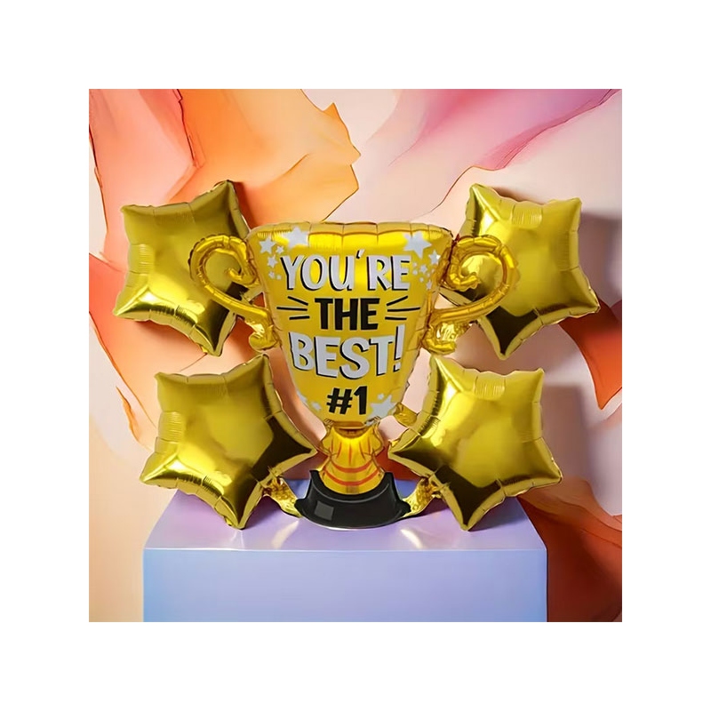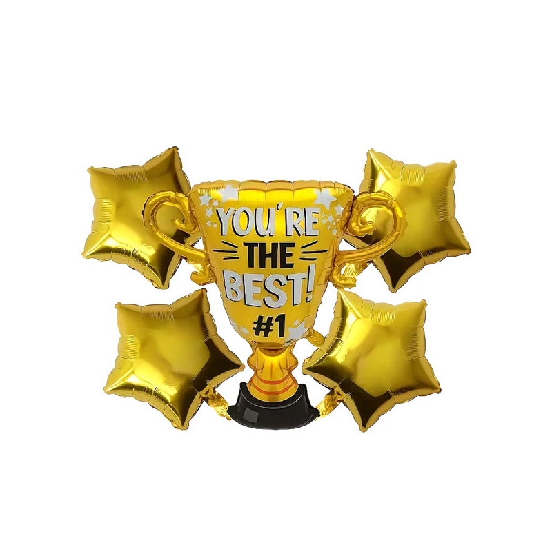 Bouquet graduaci贸n figura "copa you are the best #1" para arreglos y decoraciones en una fiesta del graduado.