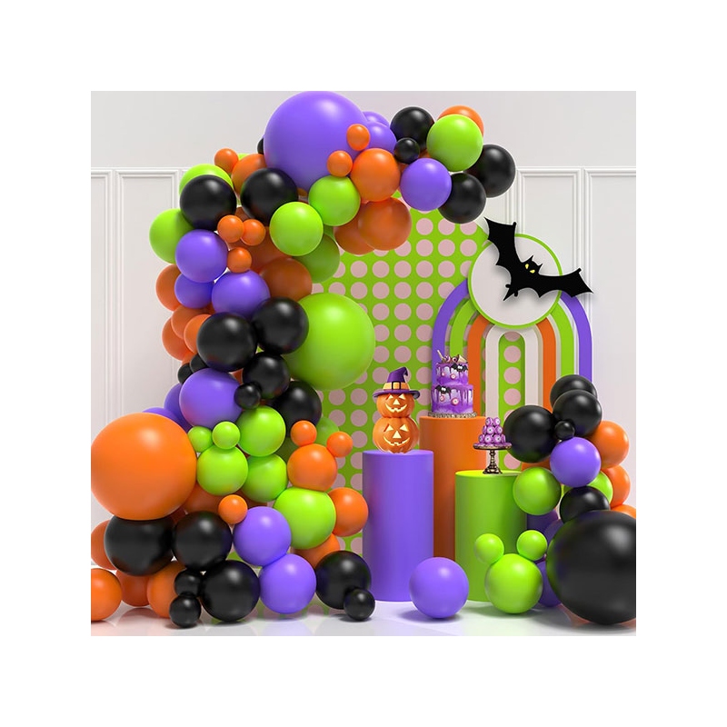 Kit arco 102 globos halloween colores de la tematica para la decoraci贸n de tu sal贸n.
