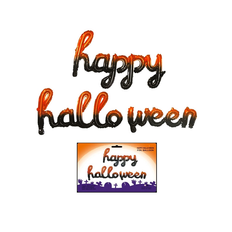 Cartel de globos happy halloween en variados colores, solo inflar con aire y dar un ambiente especial a tu sala para esas ocasiones especiales.