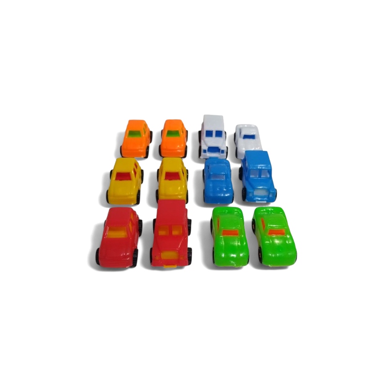 Bolsa 12 carritos juguetes de pl谩stico en colores surtidos y variados para regalar o rellenar tus sorpresas.