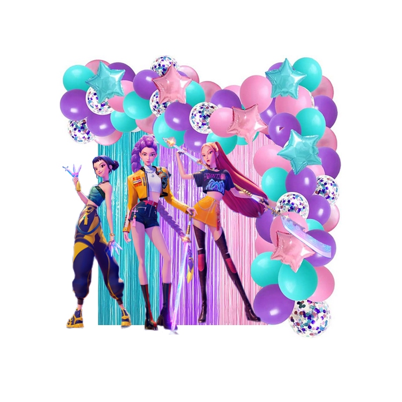 Kit arco kpop hunters de 111 globos para la decoraci贸n y ambientaci贸n de tu sal贸n con la tematica del personaje.