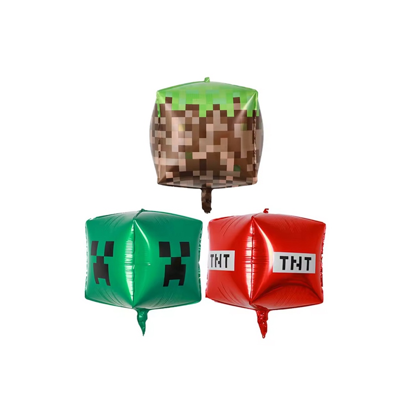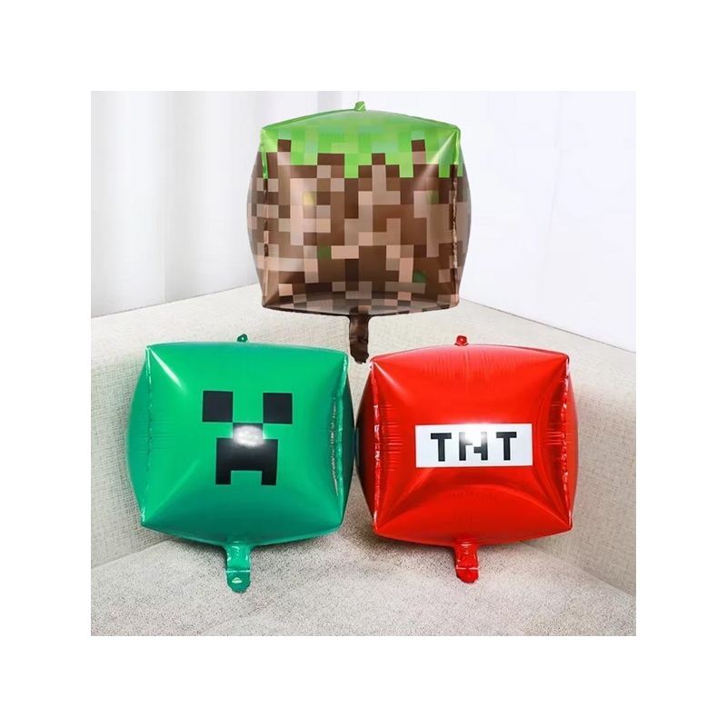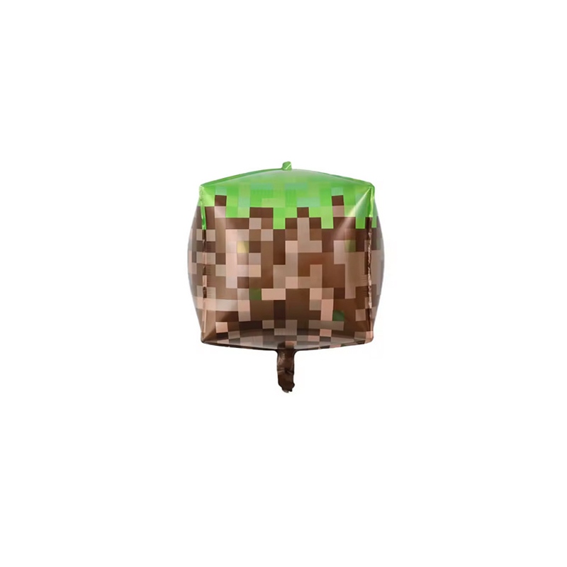 Globo 4D minecraft pixeleado material foil ideal para las decoraciones y ambientaciones del personaje animado.