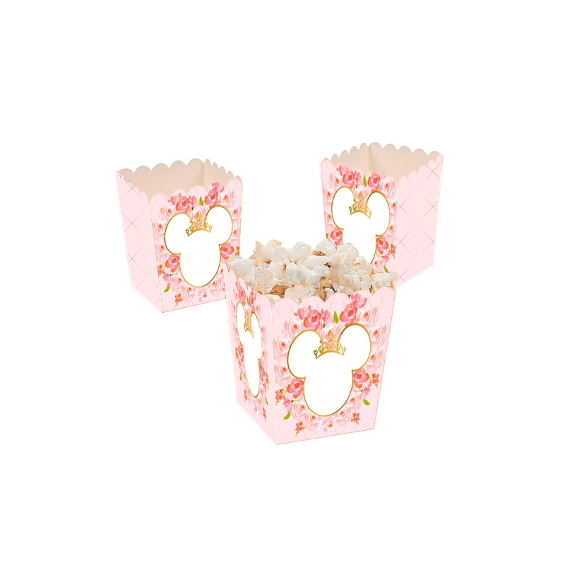10 Cajas de canchita popcorn con divertidos dise帽os de minnie mouse gold. Sorprende a tus invitados decorando tu mesa con detalles de tu personaje favorito.