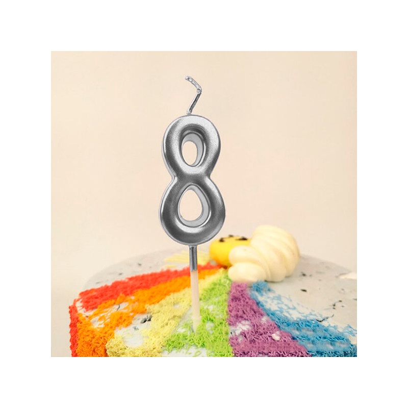 Vela n煤mero del 0 al 9 - ? en tonos cromado, adorna con este articulo los momentos mas especiales.